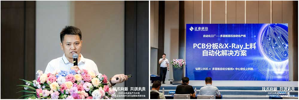 緊接著,正業科技分別帶來了鍍層銅自動檢測、全尺寸快速測量、字符噴印、PCB分板&X-Ray上料自動化、激光加熱半固化片自動化裁切、數字化助力PCB行業轉型升級、高端TDR特性阻抗測試儀等解決方案的專題演講,希望通過這些解決方案的引入和應用幫助業界同仁解決產品在設計和制造中遇到的問題,提質、降本、增效,共同推動PCB產業的持續發展與升級。