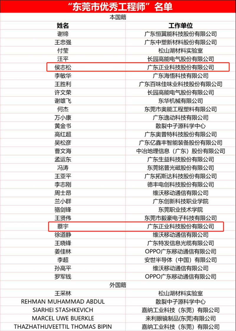 當(dāng)前,新一輪科技革命和產(chǎn)業(yè)變革正在加速演進(jìn),科技和人才成為國際戰(zhàn)略博弈主戰(zhàn)場。工程師是推動工程科技造福人類、創(chuàng)造未來的重要力量,是國家戰(zhàn)略人才力量的重要組成部分。在2024年12月8日舉行的“匠心鑄品質(zhì) 新質(zhì)創(chuàng)未來”東莞市工程師日慶典及“優(yōu)秀工程師”發(fā)布儀式上,經(jīng)過激烈的評選,從超過500名候優(yōu)秀工程師中選出35位杰出代表授予“2024年東莞市優(yōu)秀工程師”的榮譽(yù)稱號,以城市之名致敬工程師!廣東正業(yè)科技股份有限公司(以下簡稱正業(yè)科技)——蔡宇先生、侯志松先生,憑借其卓越的專業(yè)能力和顯著的技術(shù)貢獻(xiàn),榮膺此殊榮。