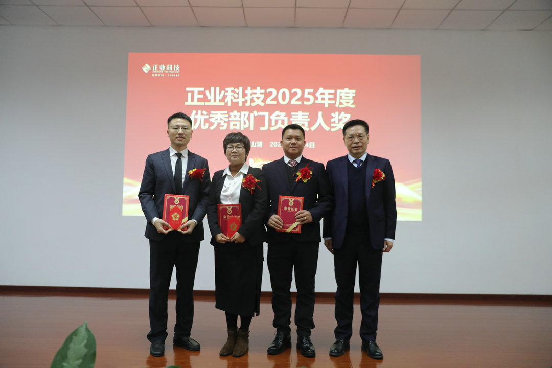2026年1月24日,廣東正業科技股份有限公司(以下簡稱:正業科技)“2025年度總結暨表彰大會”隆重召開。董事長余笑兵、黨支部書記、總裁方志華、黨支部副書記、研究院院長徐地華等集團管理層出席了本次會議,共同回顧2025年的奮斗足跡,共繪新年發展藍圖。
