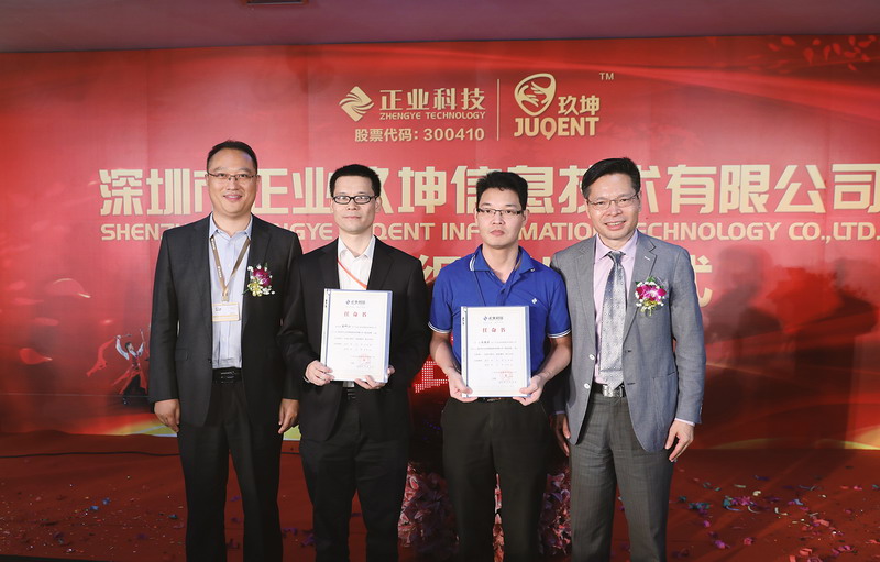 在龐克學(xué)總經(jīng)理激情洋溢的講話后,揭牌儀式正式啟動。在眾多嘉賓和公司精英的見證下,正業(yè)科技董事長徐地華、副總裁徐國鳳女士、副總裁徐地明、正業(yè)玖坤總經(jīng)理龐克學(xué)、副總經(jīng)理盧亞男女士共同按下揭牌儀式啟動球,標(biāo)志著深圳市正業(yè)玖坤信息技術(shù)有限公司正式揭牌成立。