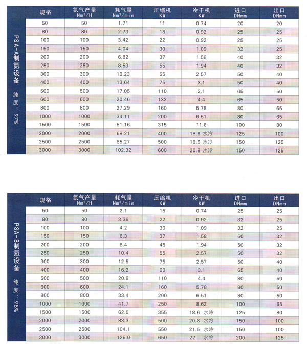 制氮機(jī)(制氮設(shè)備)技術(shù)參數(shù)