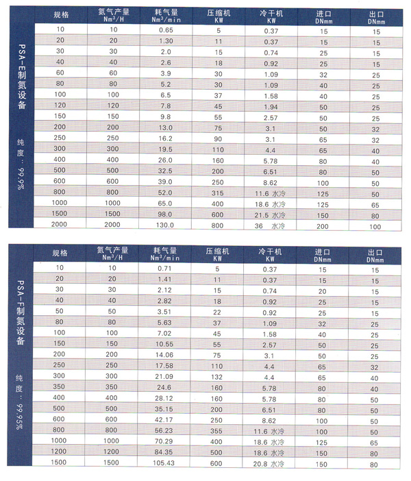 變壓吸附制氮機(jī)(制氮設(shè)備)技術(shù)參數(shù)如下: